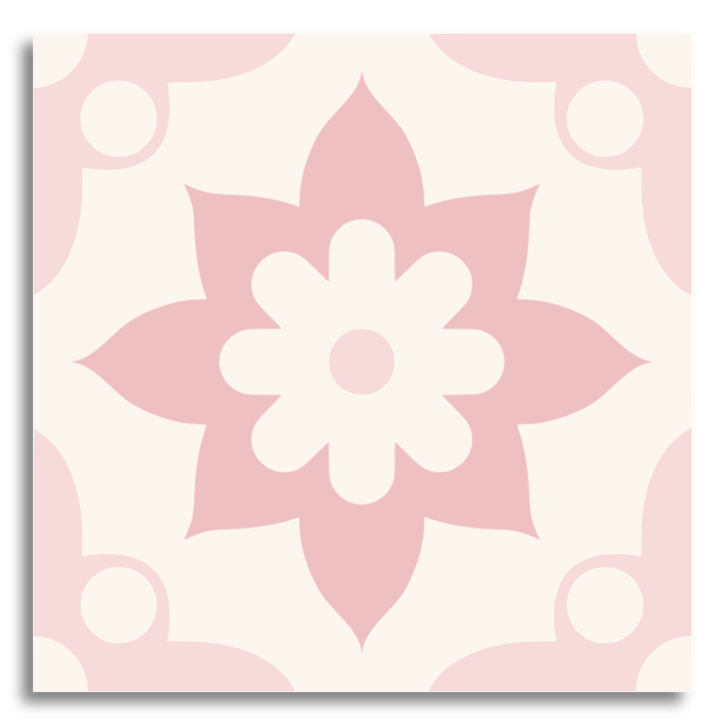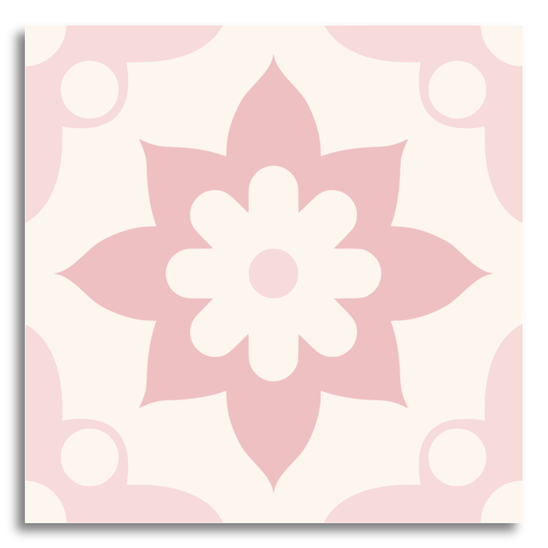 This decor tile showcases a classic encaustic pattern, featuring a central floral motif with soft, rounded petals. Radiating outward are geometric shapes that create a sense of balance and symmetry. The color palette is composed of subtle light gray and off-white tones, offering a gentle and harmonious appearance. This elegant design is versatile, seamlessly integrating into various decor styles with its timeless charm.