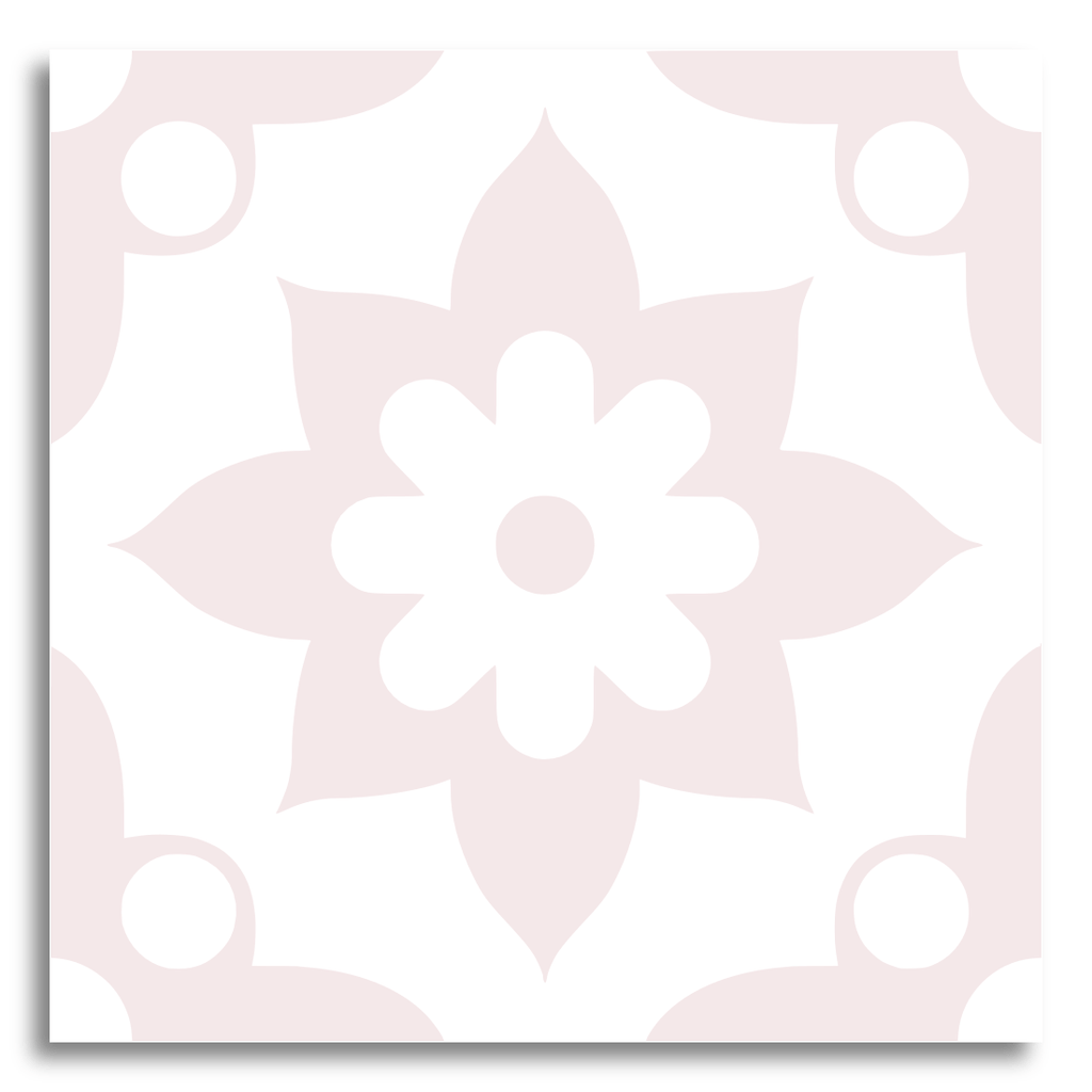 Deze decortegel toont een klassiek encaustisch patroon, met een centraal bloemmotief met zachte, afgeronde bloemblaadjes. Straalsgewijs naar buiten zijn geometrische vormen die een gevoel van balans en symmetrie creëren. Het kleurenpalet bestaat uit subtiele lichtgrijze en gebroken witte tinten, wat een zachte en harmonieuze uitstraling biedt. Dit elegante ontwerp is veelzijdig en integreert moeiteloos in verschillende decoratiestijlen met zijn tijdloze charme.