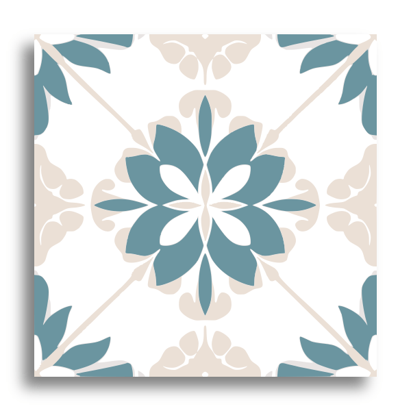 This decor tile showcases a symmetrical floral design, where soft, rounded shapes gracefully extend from the center. Inspired by traditional encaustic tiles, it features intricate detailing in a harmonious layout. The muted palette of beige, cream, and light taupe lends a subtle elegance, perfectly balancing classic charm with versatile appeal, making it an ideal addition to diverse interior styles.
