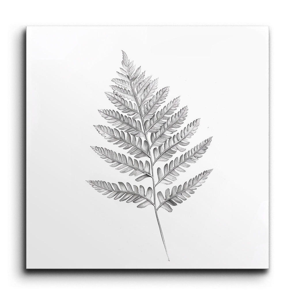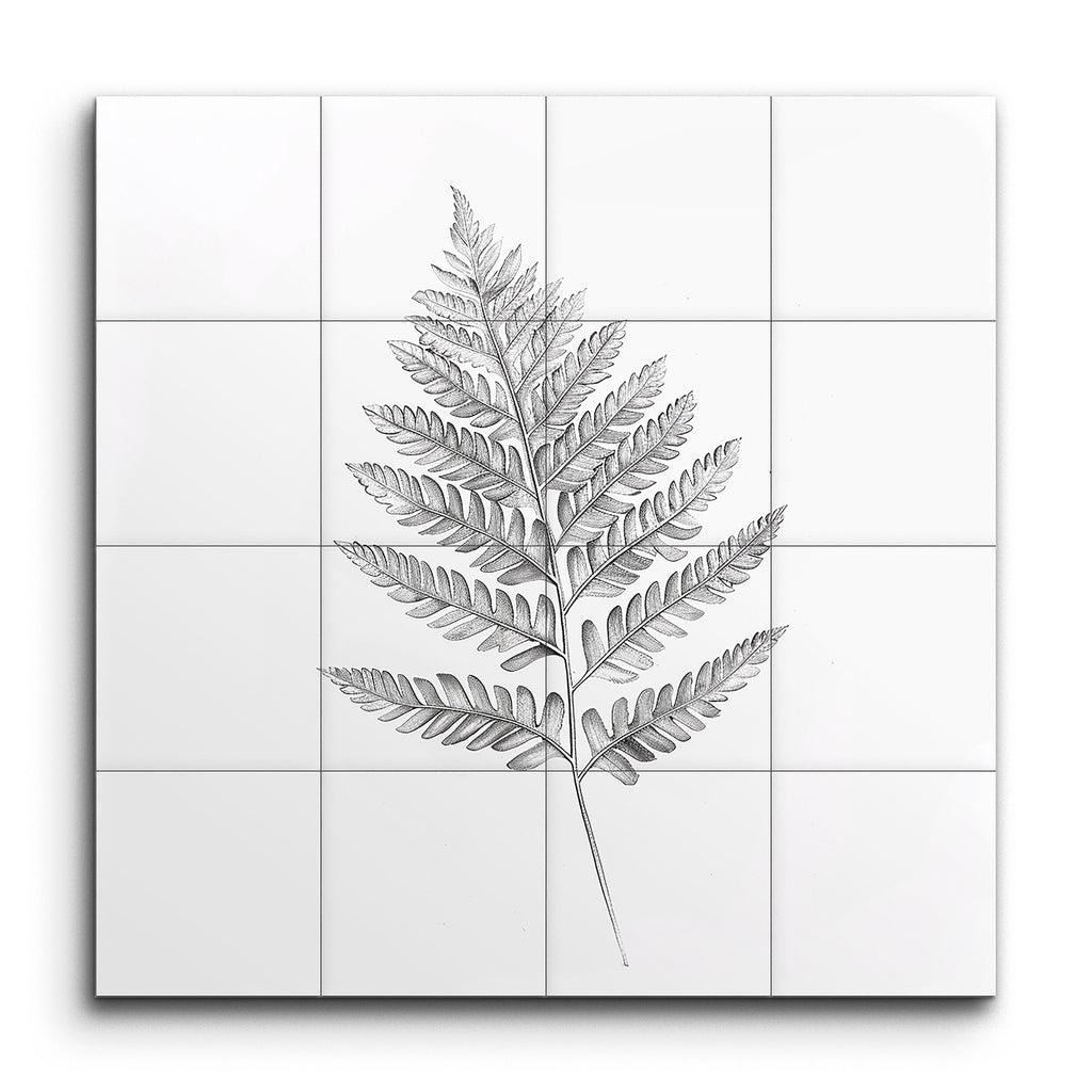 Transform your space with this captivating tile mural, featuring a highly realistic illustration of a fern leaf. The intricate details of each leaflet, from delicate veins to natural curvatures, are meticulously captured, offering a three-dimensional appearance. Fine, clean lines emphasize the fern's natural elegance and symmetry, while subtle shading highlights its complexity. This artwork invites you to appreciate the serene beauty and intricate structure of nature, making it a stunning focal point for any room.
